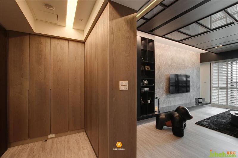 玄關處,設計師將以往華而不實的屏風舍棄,轉(zhuǎn)而以更加實用的柜體作為屏風,一方面解決進門便看到客廳全貌的尷尬之境,另一方面也提高了空間的收納能力,美觀與實用兩者合一;設計師還規(guī)劃了落塵區(qū),將歸家所帶回的塵土,止步于此,讓整個空間無時無刻都以最佳狀態(tài)迎接業(yè)主的回歸。