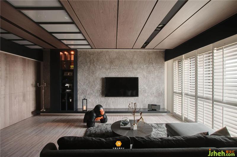 緊接著來到客廳,首先將視線吸引住的便是造型獨特的天花造型,以及時尚大氣的電視背景墻;天花以木質(zhì)地為主要飾面,搭配等分的玻璃格子造型和金屬勾勒,奠定了空間中的時尚意趣基調(diào),豐富了空間層次感;電視背景墻以大面石材建構,簡簡單單,與天花的多樣形成鮮明的對比,不僅讓視覺的感受多樣化,同時也讓空間充滿時尚簡約的氣息。