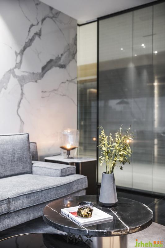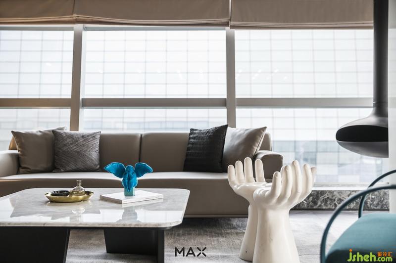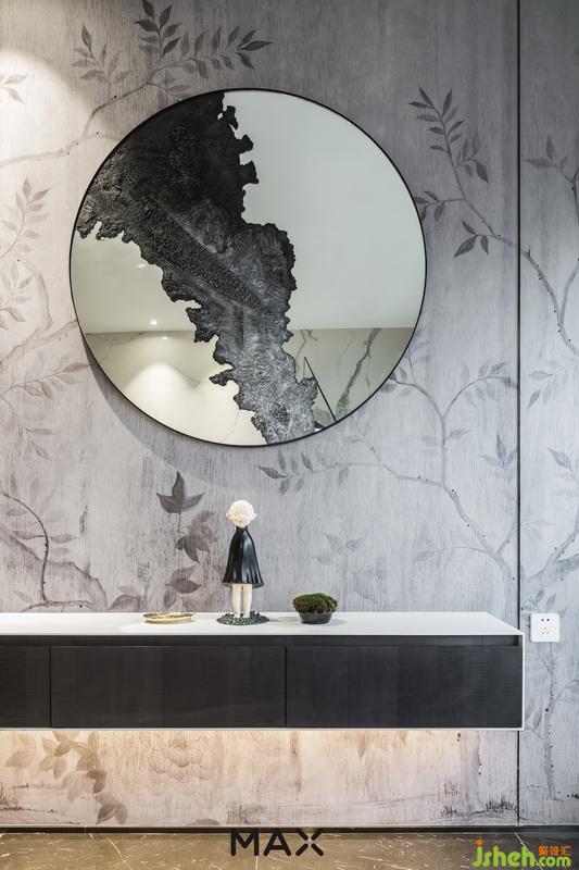 空間陳設(shè)上運(yùn)用了大量的藝術(shù)品,室內(nèi)設(shè)計(jì)師對(duì)”圓”這個(gè)圓形特別迷戀,不規(guī)則圓形、半圓弧作為常用的形態(tài)出現(xiàn),弧線能夠中和金屬的重量感。