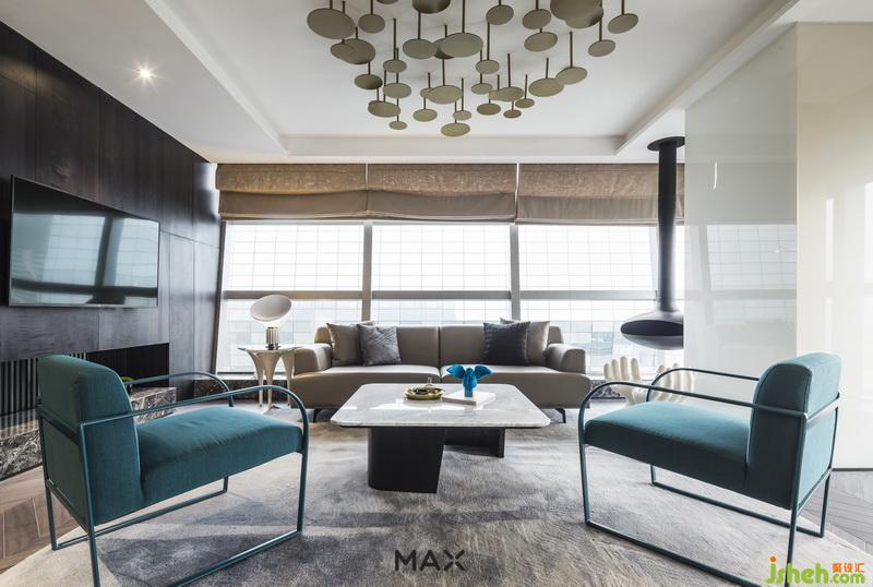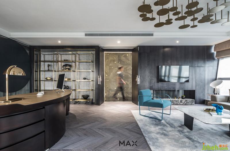 放望整個(gè)總經(jīng)理辦公室,一抹靛藍(lán)在中央處形式點(diǎn)狀散開(kāi),巧妙地與環(huán)境對(duì)話。