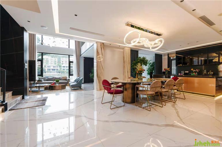 客廳采用大膽的色彩搭配與復(fù)古的家具,廣州別墅設(shè)計(jì)打造一個(gè)層次分明、色彩豐富同時(shí)又不失舒適的空間。