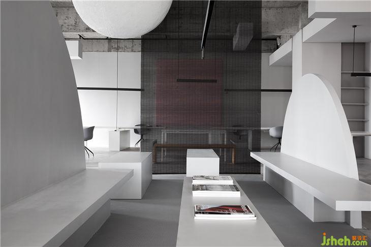 在空間整體冷靜色彩的提煉中,具有無(wú)限張力的留白處理,是設(shè)計(jì)師的克制處理。跳脫的紅與粉,就像是這未知空間中躁動(dòng)的原點(diǎn)。白本身處于色界的極端,在這界線分明的空間中,會(huì)議區(qū)成了克制的純與空,紅色沙發(fā)與粉色板塊的激進(jìn)表達(dá),完全拋開(kāi)了界的比例,對(duì)比鮮明。從色界極端入手,除了大膽的嘗試,克制與躁動(dòng)的較量,還交織著與情緒相輔的空間感受,引發(fā)人的行為特征,促進(jìn)情感交流、思想碰撞。