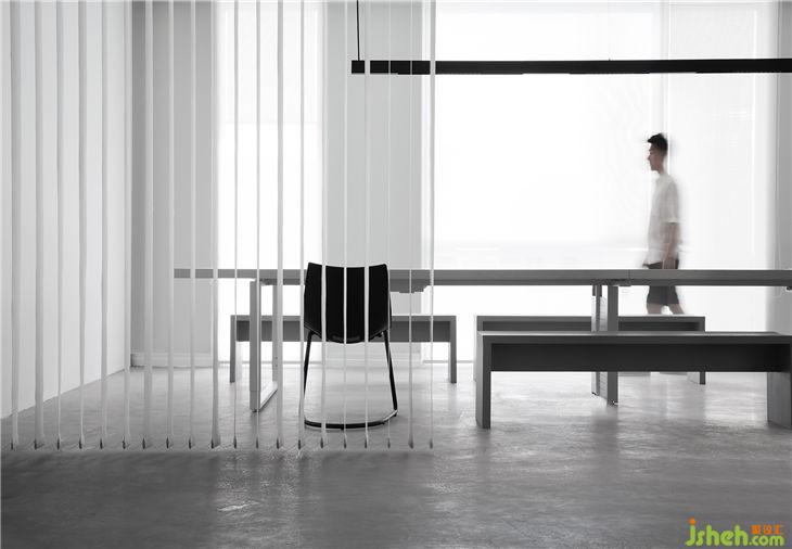 通過(guò)材質(zhì)的關(guān)聯(lián),天花與地面的分割。打破空間的一致性,天花保留了原建筑的鋼筋結(jié)構(gòu),看似孤立的元素卻無(wú)心成了最躁動(dòng)的存在。通過(guò)原始的粗獷與細(xì)膩的形態(tài)構(gòu)成,整個(gè)空間看上去都是自由的表達(dá)。既對(duì)立而又協(xié)調(diào)。