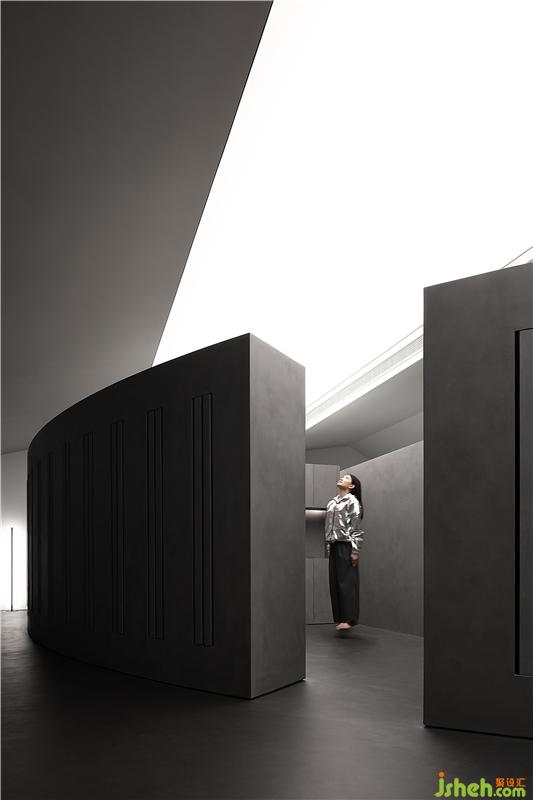 光是表現(xiàn)空間情緒的重要介質(zhì),光影互相依存,空間中大面積大拉膜,強(qiáng)調(diào)光線的柔美均衡,一方面感好的服務(wù)于空間中產(chǎn)品的照明,在情感上弱化了影的存在,營(yíng)造一種戲劇化的安靜,局部強(qiáng)化光影,表現(xiàn)材料質(zhì)感的同時(shí)感受空間的躁動(dòng),一種壓抑著的力量準(zhǔn)備爆發(fā)。