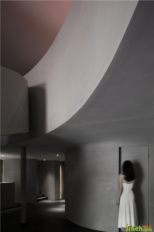 SOOYOU位于哈爾濱群力新區(qū),是一家主要接待女性顧客的美容院。入口的墻體,其微妙的曲面和弧形的建筑本體形成呼應(yīng),創(chuàng)造出一種窺視的另類視角,暗示著空間的神秘存在。