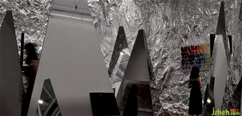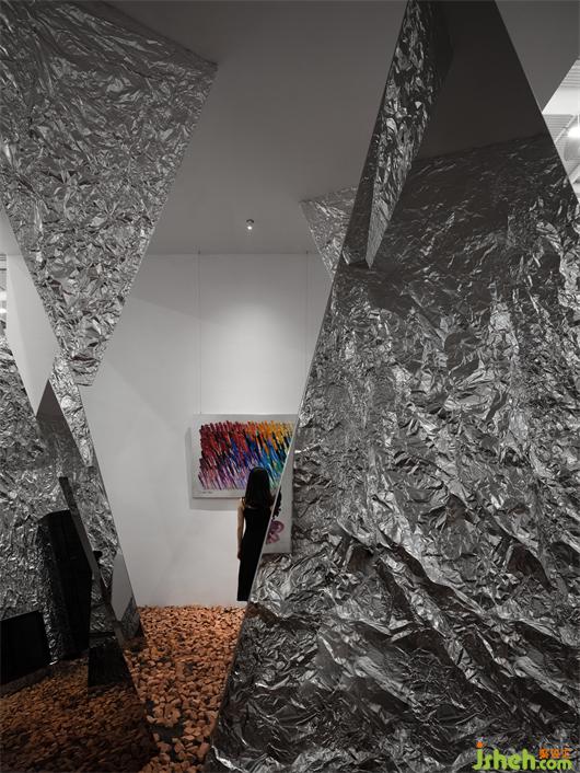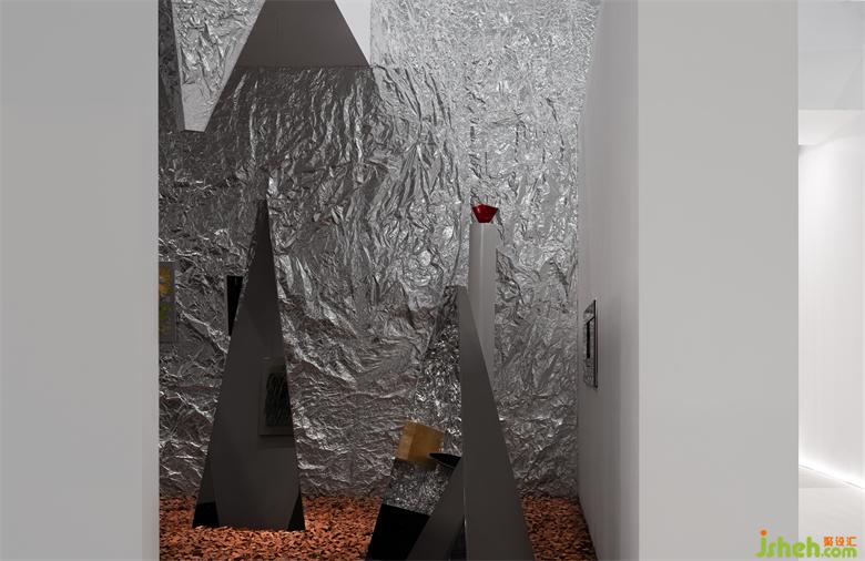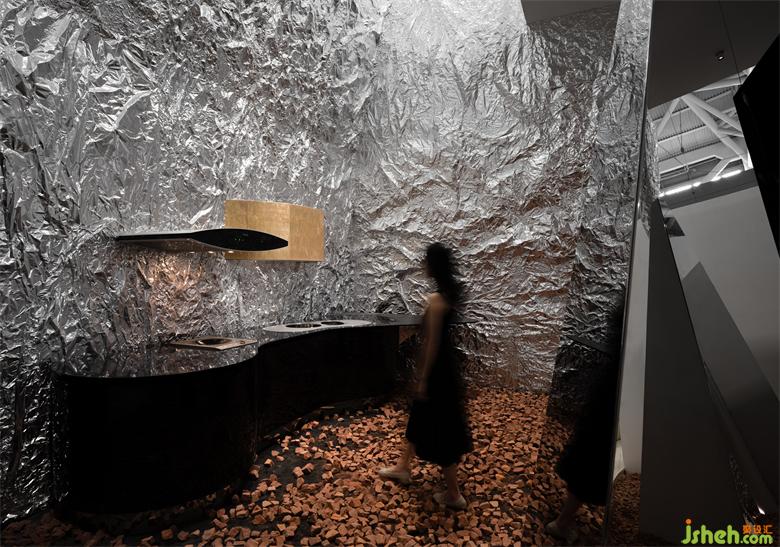 在整體的展覽館中,琳瑯滿目的產(chǎn)品與空間設(shè)計,作為觀展者,一天看了無數(shù)的產(chǎn)品與展覽館,如何讓流水線中的人產(chǎn)生記憶點,獲得意外。地面的紅色丹霞碎石給人觀展的過程產(chǎn)生危險與意外的信號,這是在視覺以為所獲得的體驗。展覽設(shè)計這種體驗是可以直接刺激我們的大腦的。而墻面的褶皺金屬質(zhì)感,通過視覺的沖擊,吸引人的感觀。特殊定制的玻璃更是讓空間產(chǎn)生豐富的錯解與層次,讓人產(chǎn)生探索的欲望。所有的這一切都在用最強烈的聲音來反饋到人的身體,在體驗上產(chǎn)生意外的驚喜。而最終的目的都是在解決商業(yè)上如何產(chǎn)生高效的流量與記憶。