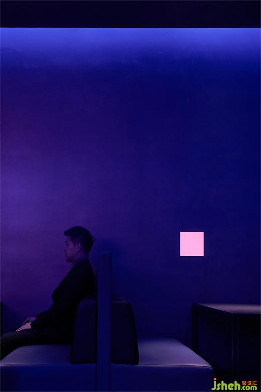 吧臺(tái)區(qū)域的情緒,迷幻的光影設(shè)計(jì)也更加大膽與大面的鋪陳,其目的是為了將場(chǎng)域情緒的力量擴(kuò)大化,其爵士與朋克的內(nèi)在精神力量迷幻,熾熱的流動(dòng)在空間,但又緩慢悠揚(yáng)且激進(jìn)的浪漫節(jié)奏。