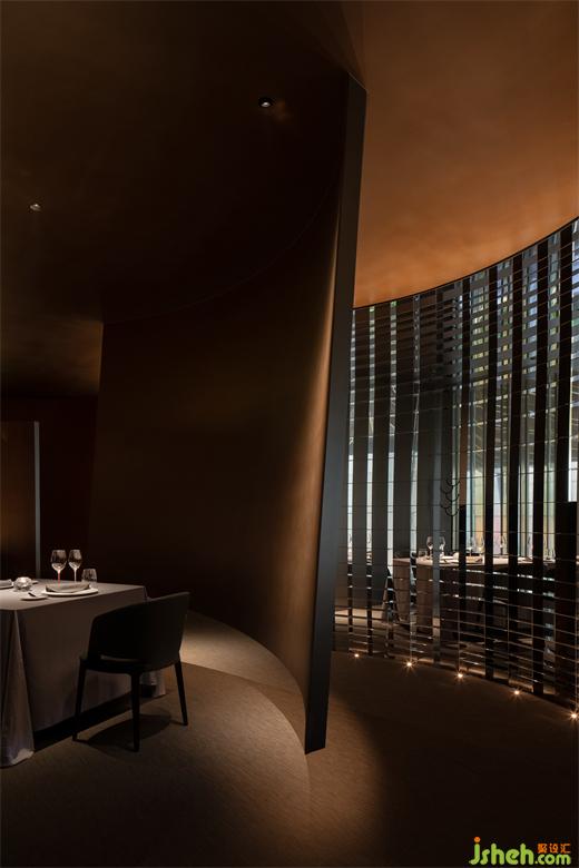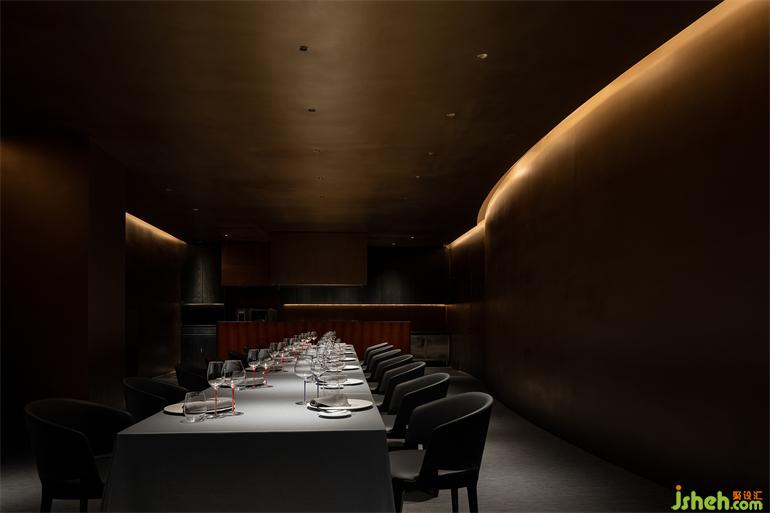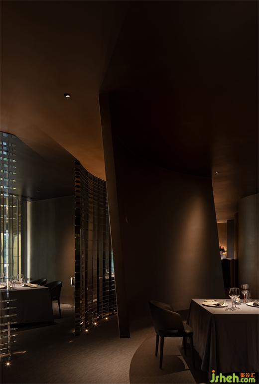 空間處于一種半封閉的狀態(tài),強(qiáng)調(diào)空間私密性的同時,餐廳設(shè)計讓人在空間中游走時產(chǎn)生不同的場景與情緒,幽暗的光環(huán)境強(qiáng)調(diào)了人在空間的事件才是設(shè)計核心。一種新的享樂主義。