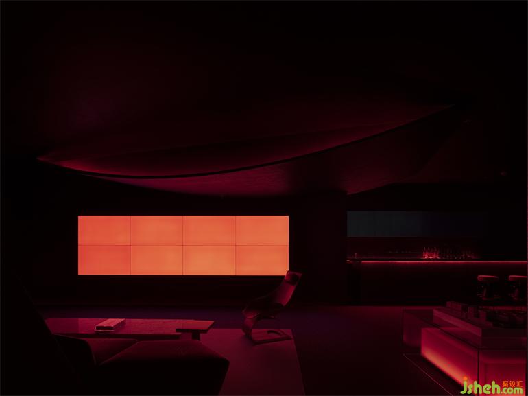 辦公會所設(shè)計(jì)去除傳統(tǒng)對坐的會議模式,弱化會議功能的表現(xiàn)形式。我們將會議與接待區(qū)統(tǒng)一在一起。通過智能燈光與音響系統(tǒng)的控制,可以兼顧觀影娛樂功能,讓空間的使用更高效,放松,弱化空間的商務(wù)氣息。在這里,人與人不是對立面,而是一個(gè)共同體,這是冰冷寫字樓里的溫度。