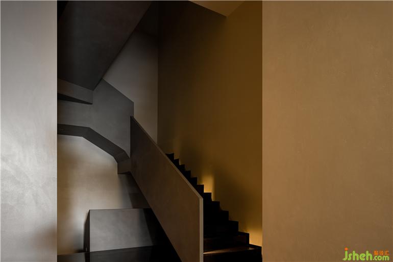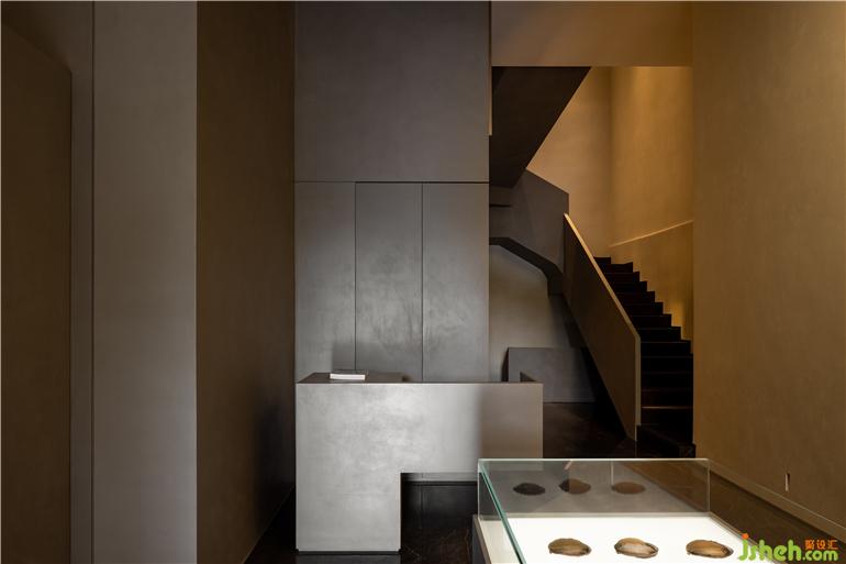 一層空間功能主要為產(chǎn)品展陳,結構體的表達側重于更加具有力量感。看似分離的布局形式又連貫著一種整體感知的牽引,自由序列的建造邏輯賦予空間以表面沖突又具有強烈和諧感的圍合形態(tài)。
