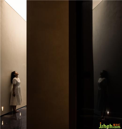 展示館設計在不規(guī)則幾何體塊的建筑輪廓內(nèi),“形”與“形”之間以獨立的形式分離感,讓相對小的場地產(chǎn)生更加具有沖擊力的室內(nèi)空間全景。