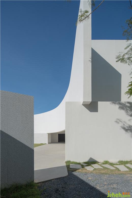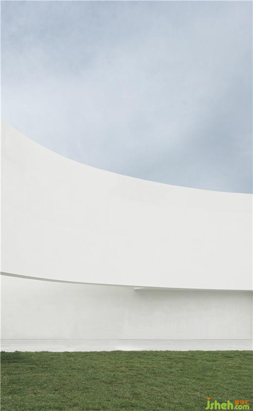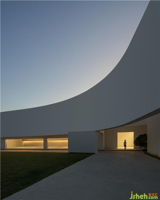 藝術(shù)中心設(shè)計除了物體本身,物體對周圍的作用也是設(shè)計過程值得去思考的,天際線的突破是設(shè)計中的計劃又略帶意外的一個結(jié)果。建筑的力量可以集中在一條弧線上劃破平靜的天空,吸引了所有人的眼球,同時讓平庸的村落變得具有唯美與藝術(shù)感。
