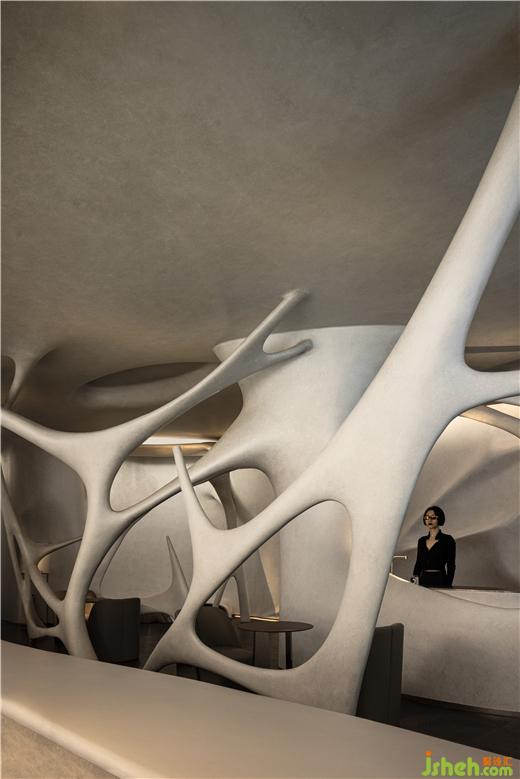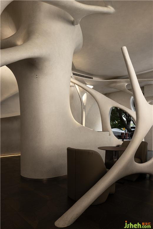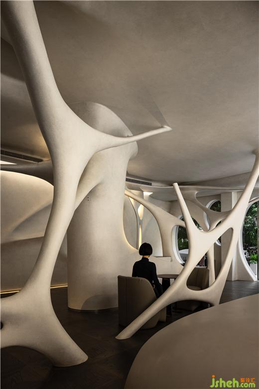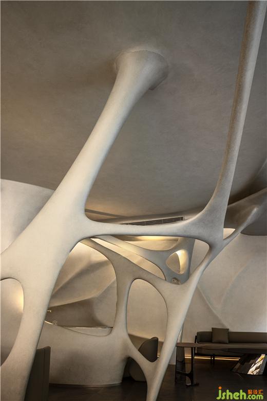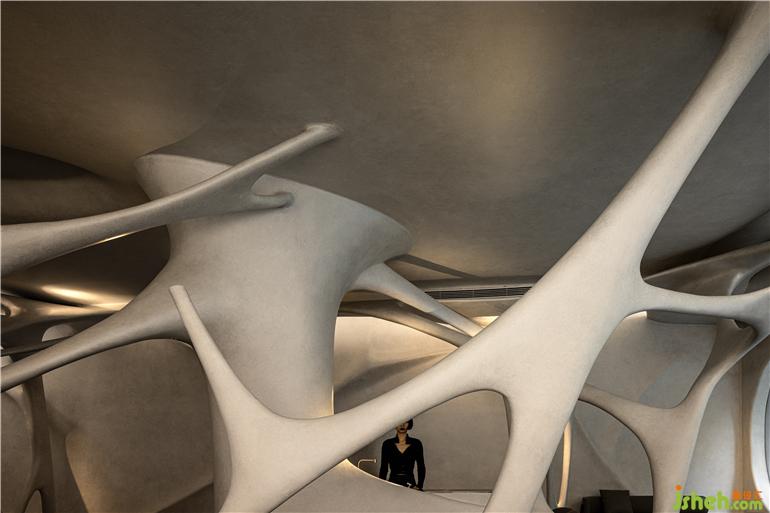 既有的形式放大化。我們看到的是一個復(fù)雜的空間場域,一個復(fù)雜的設(shè)計元素,每一個數(shù)據(jù)都存在差異化,他們之前沒有復(fù)刻,這也是項目設(shè)計中激進的片刻,第一次以這樣的方式進行空間的呈現(xiàn)。