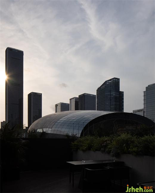 The space exudes an air of luxury and comfort because of the collision between the stone-texture paint wall and etched metal. The soft lighting further enhances the ambiance, creating a sense of weight in the area. The floor-to-ceiling glass makes the scene and fieldsuperpose,and the inversion of aheavy volume results in a dramatic yet balanced feeling. The designers’ exploration of thinking and analysis is evident in the expression of the space. The power of the curve createsfluidity, reflecting the designers’ thinking on the essence of life. The space connects rationality andsensibility, respecting the world and guiding people to pursue the law of the environment based on the present.