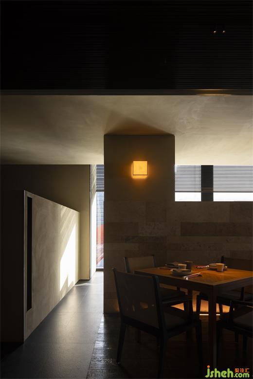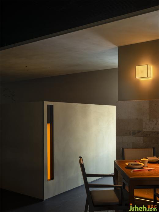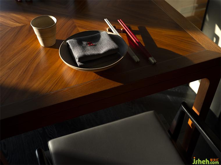 窗外的美景,空氣與偷進(jìn)來的陽光,在木格柵的作用下,形成了斑駁的光影,餐廳設(shè)計(jì)讓空間充滿了呼吸感,空間借用自然,在時間的推移中,空間不斷在變化情緒,形成了一個會呼吸的空間。
