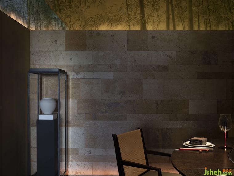 東方情緒,向往自然與文化,商場的空間環(huán)境讓整體的環(huán)境有所缺失,錯位的高墻與植物有效的營造了空間的戶外延伸感,形成了一種正確的錯覺,舊物在空間中以一種低調(diào)的姿態(tài),安靜的融入空間中,不爭不搶,與空間、食物等事件互相包容,餐廳設計營造一個友好的空間場域。