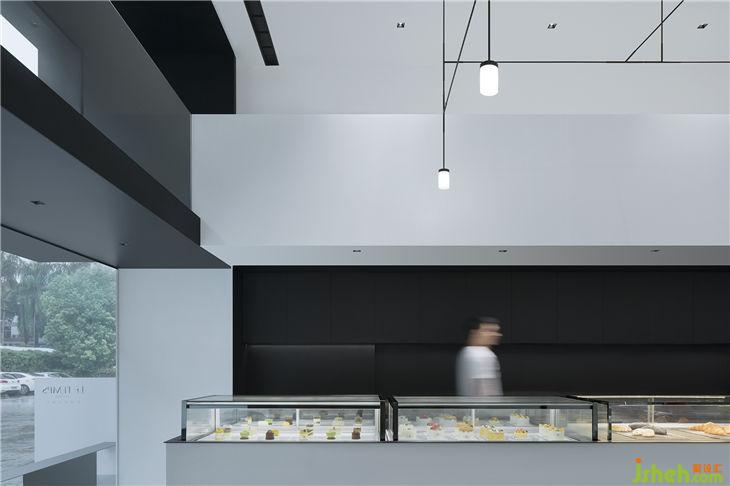 同時(shí),主人與設(shè)計(jì)師一致認(rèn)為設(shè)計(jì)應(yīng)當(dāng)有主次之分,凝練的黑白灰不與產(chǎn)品爭寵,起到一個輔助的作用,以低調(diào)的姿態(tài)烘托產(chǎn)品,使得人們把視覺的焦點(diǎn)集中在甜品上。鋪?zhàn)诱嬲龅郊炔恍e奪主,同時(shí)保持該有的熠熠生輝,讓品牌理念得以體現(xiàn)并流傳不敗。