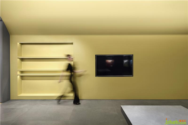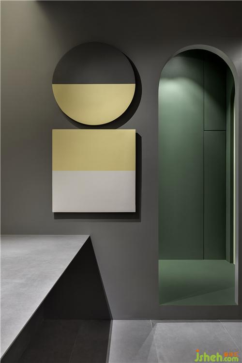 本案的設(shè)計敘事發(fā)生在一座室內(nèi)建筑當中,以藝術(shù)為主旋律,通過空間節(jié)奏呈現(xiàn)美的感染力,將無聲的實體變成生動的語言。展廳設(shè)計