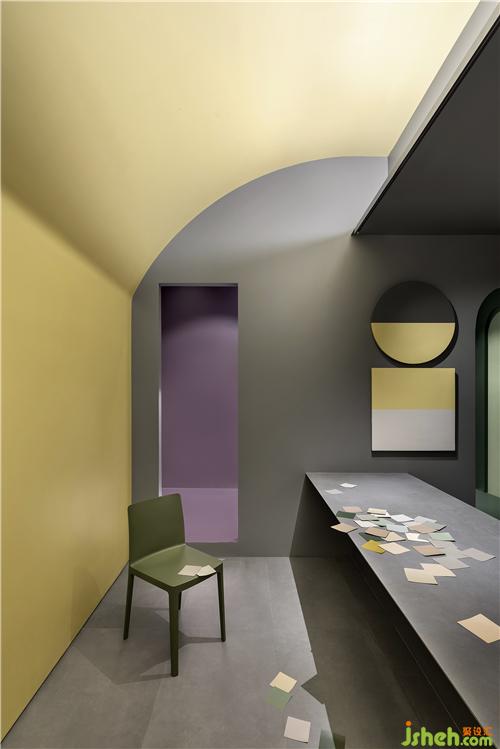 “我們創(chuàng)造性地引入‘內(nèi)建筑’思維,整合商業(yè)展廳的場景感體驗,依循動線變化來演繹界面的穿插、疊加、重合、分割,奏響極具視覺沖擊力的色彩音符,為品牌完成空間的藝術(shù)化表達?!?