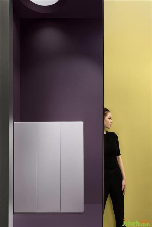 在用色細(xì)節(jié)上進(jìn)行細(xì)膩拿捏,以平衡與中和代替了強(qiáng)對(duì)比。高飽和的色彩抹上一層灰度,淡然而詩(shī)意,讓整面墻的大色塊不致空間絲毫局促或壓抑,反而平添溫暖親和的質(zhì)感,在燈光的暈染下泛起五彩漣漪。