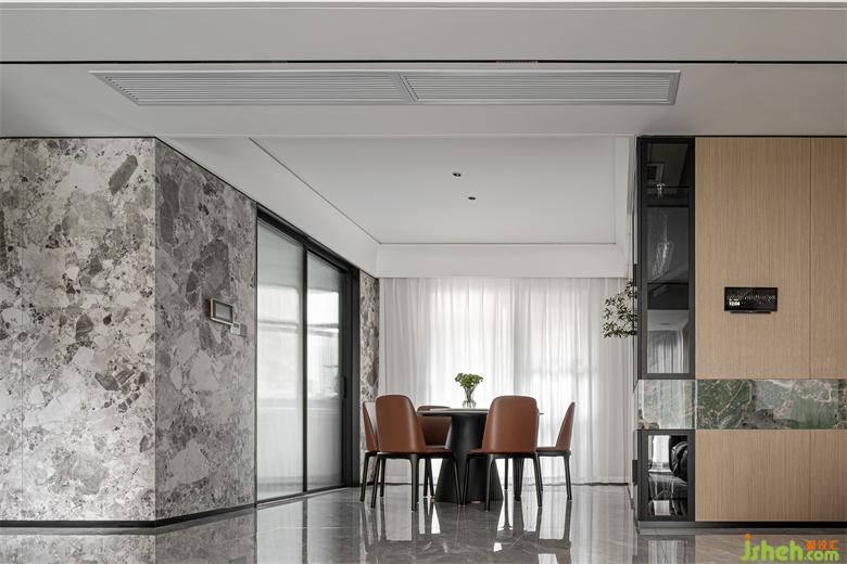 The simple and elegant log color is an important medium for communicating the movement of the space, and it can be widely used in the space. Standing on the marble floor, it forms a very distinct visual contrast, a high degree of integration of modernity and nature, which is undoubtedly revealed with a low-key attitude.