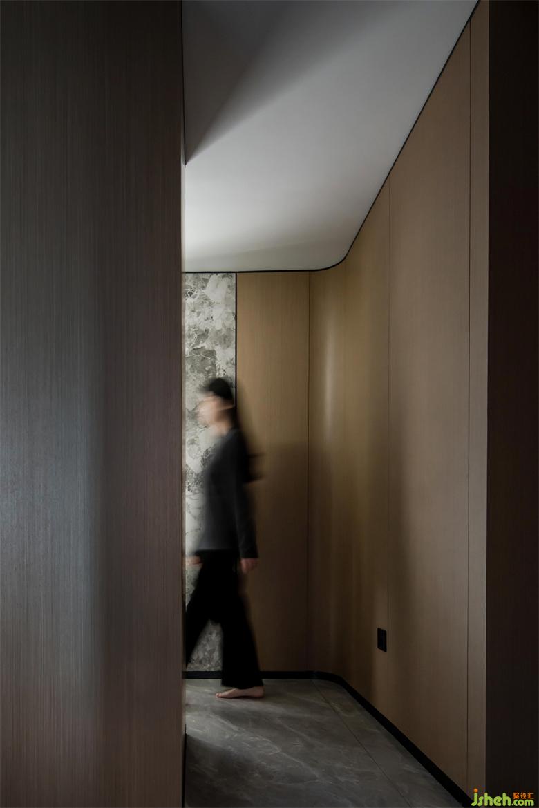 原木與巖板的交替使用,避免了空間感受的單一,室內(nèi)設(shè)計師在巖板的堅硬感與原木色彩的溫潤氣質(zhì)中繁復(fù)交迭,形成了極為豐富的空間層次。拐角的弧度巧妙地柔化著空間轉(zhuǎn)折的硬朗感,讓生活的每一個角落,都縈繞著舒適、自然、溫暖、和諧的氣息。