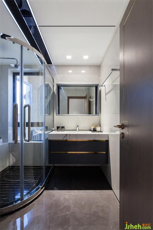 衛(wèi)生間黑白搭配的空間,大理石紋,大氣而又精致無比,洗手臺如同寶石一樣,吊頂采用大面蜂窩板加上長條形浴霸,家居設計讓整個空間更有藝術感,讓衛(wèi)生間添上幾分層次感,時尚大方有檔次。