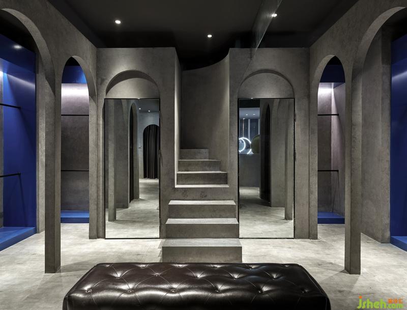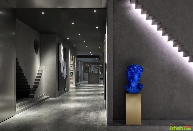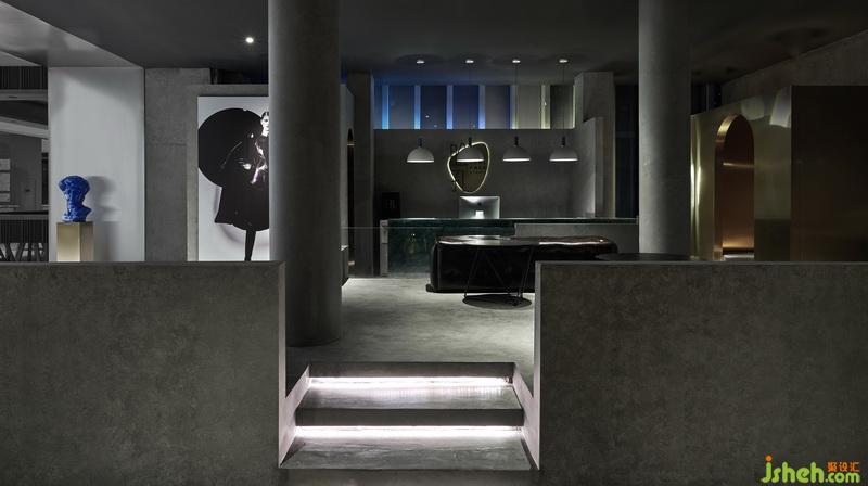 大量的性冷淡高級(jí)灰貫穿設(shè)計(jì)始終,將高端氣質(zhì)推高到極致。然后,猛地,萬(wàn)灰叢中一點(diǎn)藍(lán),引入一種好萊塢式的大牌感和神秘感,讓人眼前一亮。