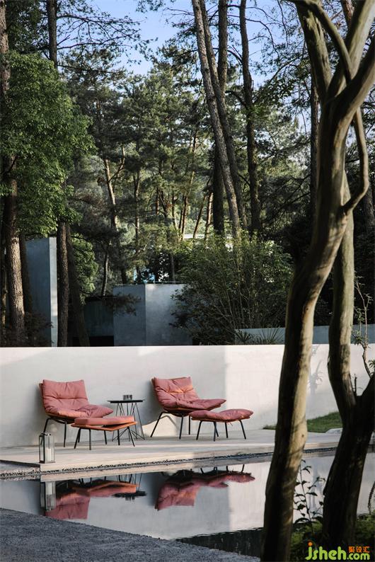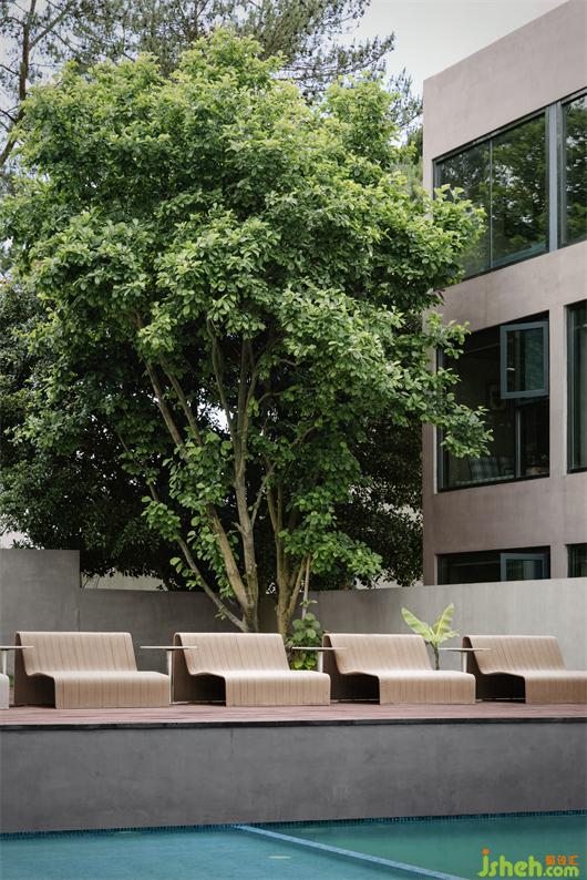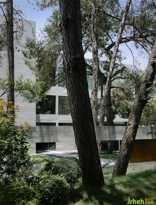 世阿彌說“越隱秘越迷人”,主體的隱匿和不甚完美,卻是觀者想象力之來源。于是庭院深深,在粗糲質(zhì)樸的混凝土、老樹和光影的交織中,建筑便脫離了現(xiàn)代的一板一眼,與看客產(chǎn)生了共振,在人、建筑與自然的鏈接中,當(dāng)代侘寂之美開始氤氳。