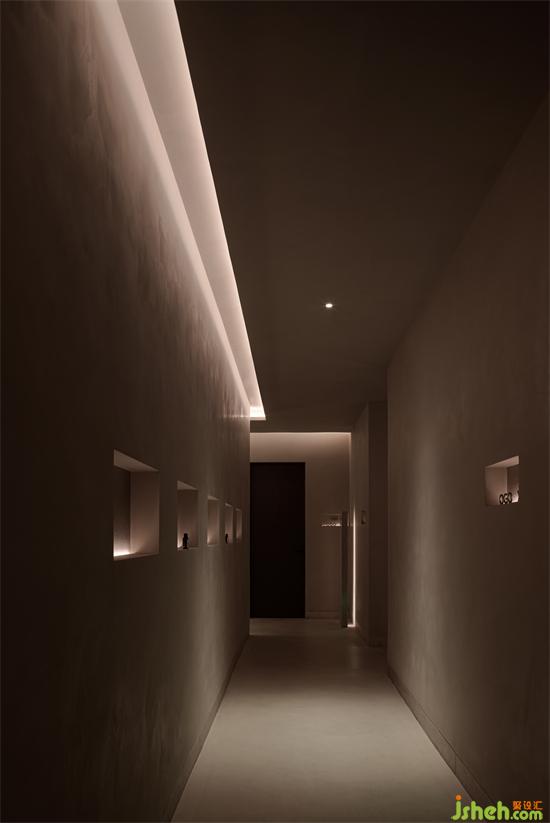 藝術(shù)的魅力在于克制與平衡,設(shè)計(jì)也一樣,需要在多與少之間做選擇與變化。O.GO SPA項(xiàng)目中設(shè)谷主要用了兩種建筑材料,墻面的肌理涂料和地面的微水泥,希望通過建筑材料的微妙變化,結(jié)合空間形體和燈光引起我們的聯(lián)想,讓我們聚焦于空間SPA設(shè)計(jì)本身。