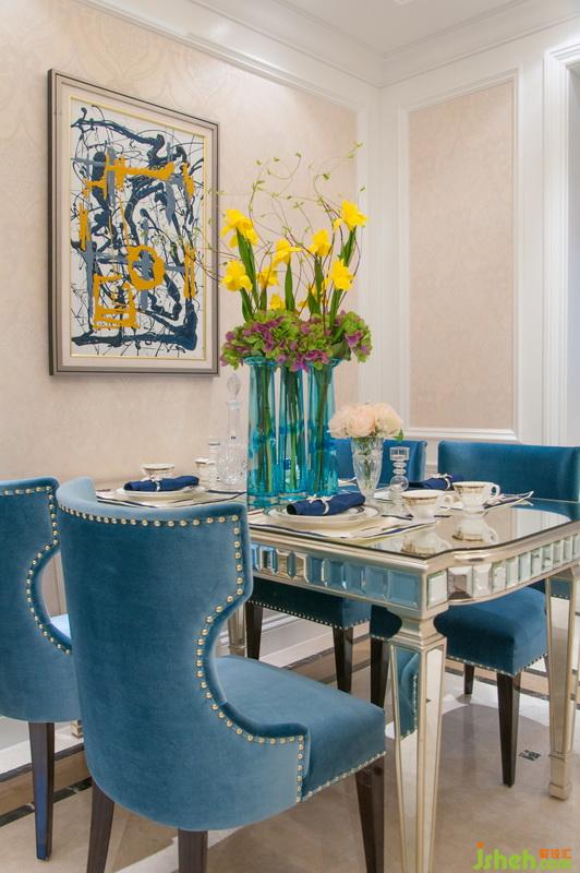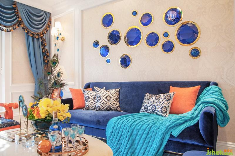 設(shè)計(jì)風(fēng)格上以現(xiàn)代美式風(fēng)格為主。整體空間上以中世紀(jì)藍(lán)為主調(diào)。中世紀(jì)藍(lán)(Medieval Blue)——來(lái)自于歐洲中世紀(jì)時(shí)期使用的自然染料,高質(zhì)量的深天藍(lán)色織物工藝繁復(fù)且非常昂貴,是屬于貴族身份象征的顏色之一。當(dāng)中世紀(jì)藍(lán)入住家居,這個(gè)充滿(mǎn)張力的藍(lán)色能夠烘托空間氣氛,猶如一幅靜謐畫(huà)作,完美演繹出優(yōu)雅大氣的貴族氣質(zhì)??臻g設(shè)計(jì)從入口過(guò)道到每個(gè)獨(dú)立的房間都遵循著整體而又各自獨(dú)具空間個(gè)性的空間美學(xué)原則,通過(guò)精致而豐富的細(xì)節(jié),在色彩上通過(guò)對(duì)對(duì)比以及類(lèi)比色的運(yùn)用,以及對(duì)材質(zhì)不用表現(xiàn)形式的運(yùn)用,意在用顏色和質(zhì)感提升空間美學(xué)氣質(zhì),同時(shí)給客戶(hù)留下一個(gè)尊貴,玩味,而又富有張力的樣板房體驗(yàn)感受。