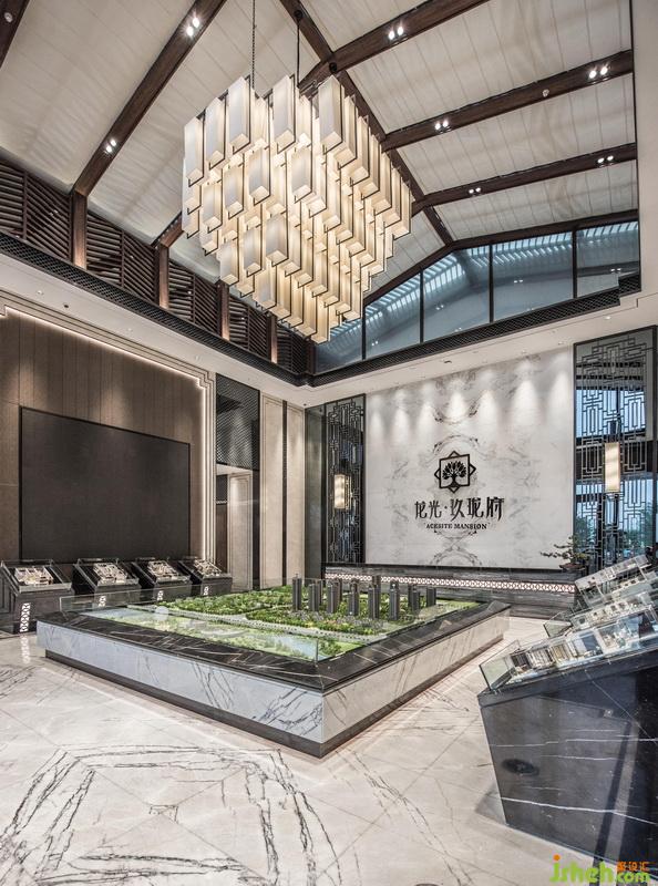 大氣恢弘近十一米空高的大堂加上接待背景墻巨幅大理石對稱拼花,接待大廳作為售樓處的第一空間,線條簡潔大氣,沙盤上方的暖色燈光與磨砂黑金屬的材質(zhì)表面交映,層層遞進,沉浸了整個空間的色彩。