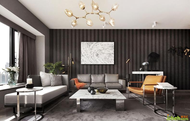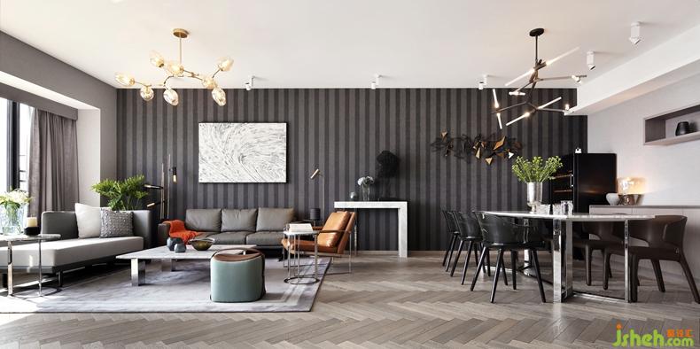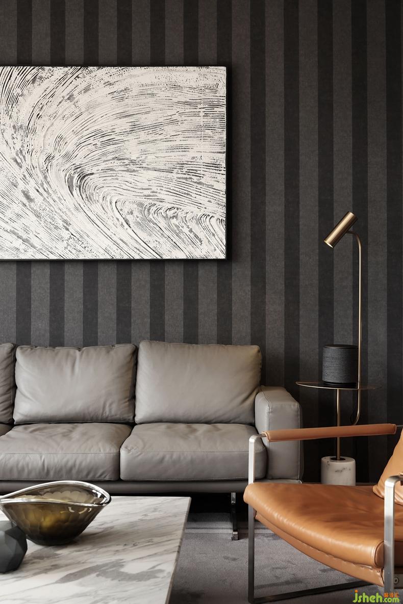 墻身沒有任何多余的設(shè)計(jì)造型,僅以深淺灰相間的墻紙綴以立體石膏纖維畫,搭配人字拼鋪灰色木地板,室內(nèi)設(shè)計(jì)師營(yíng)造出簡(jiǎn)約而雅致的居住氛圍。