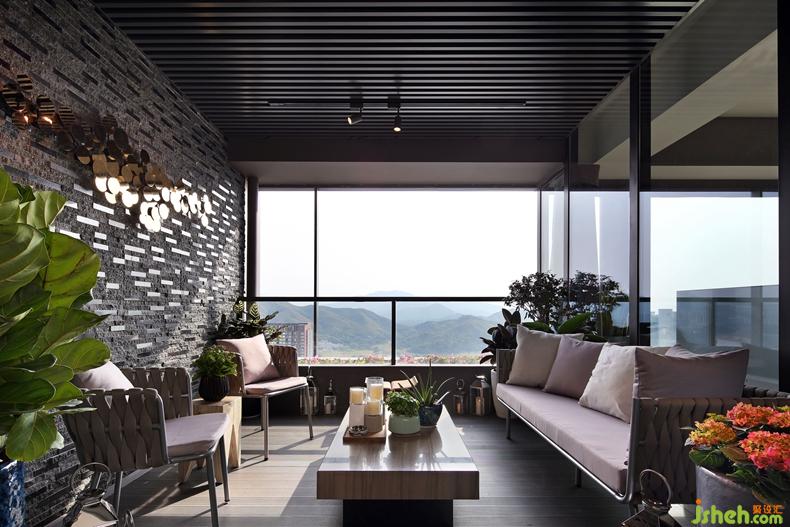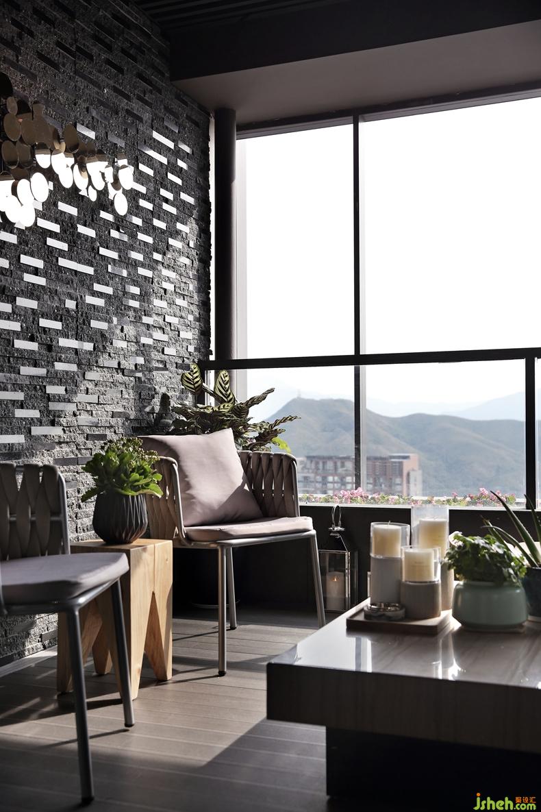 客廳飄窗延伸至了露臺(tái),同樣純粹的深灰色調(diào),加入綠植、鮮花等裝飾,讓整個(gè)空間更加有生活氣息,每當(dāng)夜晚來臨,窗外萬家燈火,室內(nèi)燈光迷人,品一杯美酒,露臺(tái)搖身一變成為了酒吧,有酒有故事,正是創(chuàng)作的好時(shí)機(jī)。室內(nèi)設(shè)計(jì)師