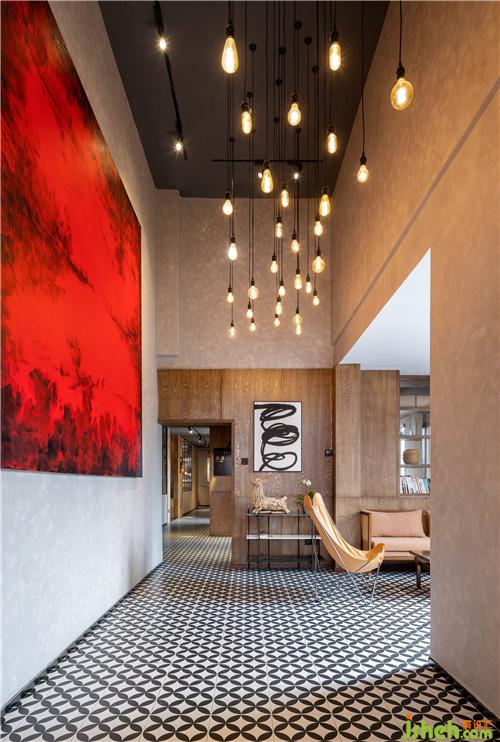 乘電梯至6層,再步行到樓頂是餐廳與健身房??臻g環(huán)境的設(shè)計(jì),要滿足人身心靈的需求,7層前廳的藝術(shù)廊,紅與黑巨幅藝術(shù)畫、數(shù)十盞鎢絲燈、一顆綠植都蘊(yùn)藏著深層的情感內(nèi)涵,為我們構(gòu)建出豐富的內(nèi)在世界。
