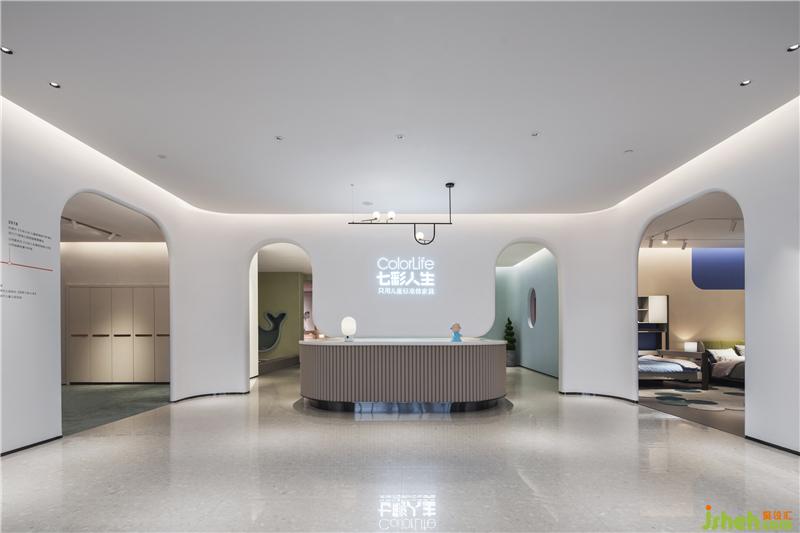 本案服務(wù)品牌為七彩人生,二十多年專注于兒童、青少年家具研究生產(chǎn)。此次設(shè)計(jì)需要對多個(gè)系列的產(chǎn)品同時(shí)展示,既要有品牌的整體感,又要有不同系列的特性美。對于展示空間來說,只有人對空間有了好感,才能增多了解產(chǎn)品的機(jī)會。