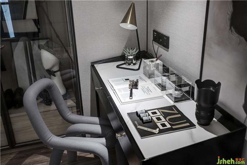 室內(nèi)設(shè)計師在書桌旁豎立著一幅黑白人物裝飾畫