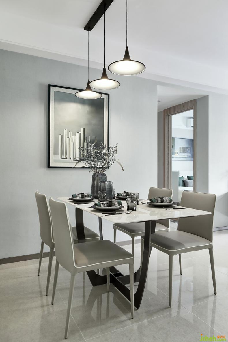 餐廳中央吊一盞特色的吊燈,營造出柔和燈光效果,各類飾品亦為這個空間注入個性化情趣,兼有客廳大理石地面干凈大氣的統(tǒng)一布局,使空間通透感和層次感更明顯。綠色象征著生命代表著健康,熱愛美食的主人可以充分享受這一空間。