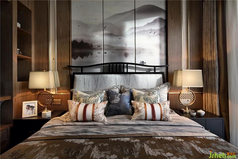 主臥在青山、碧湖、翠鳥的自然意象上延伸,以凝練的筆法抒寫空間意蘊(yùn),訴說著主人雅澹而雋秀的格調(diào)。