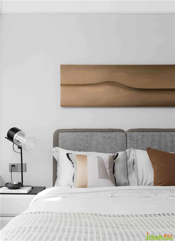 長輩房的設(shè)計強調(diào)了以純粹的材質(zhì)體現(xiàn)品味,大面積的木色為整個空間帶來溫潤的視覺體驗。細(xì)膩親膚的床品漸層相疊,更為睡眠區(qū)營造出寧靜與溫暖。
