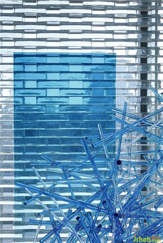 半透明感的水晶磚宛如陽光下的一尺窗紗,其設(shè)計(jì)意向來自于魔方的格狀紋理。