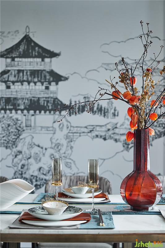 餐桌擺件精致而有序,不僅提升了空間的裝飾檔次,也將用餐的儀式感拉滿,讓氛圍自在流動(dòng),以此營(yíng)造不同的視覺感官,體現(xiàn)空間的包容性,傳遞著精致的“慢生活”生活方式。