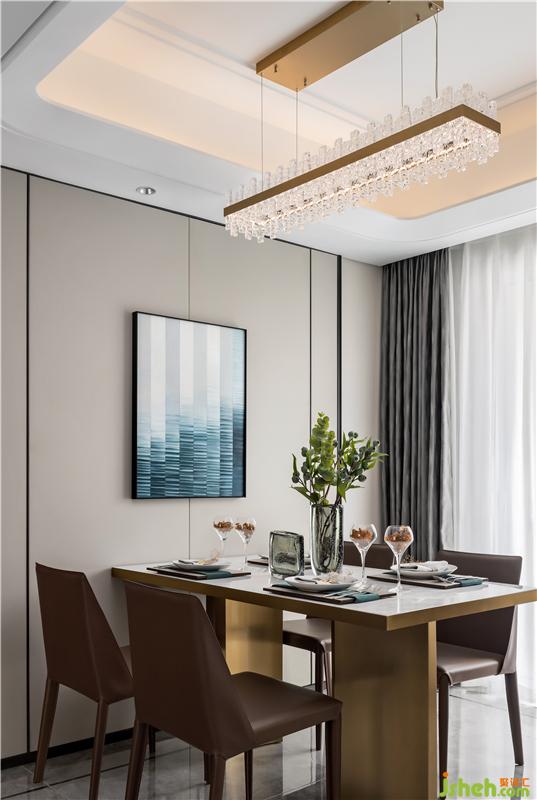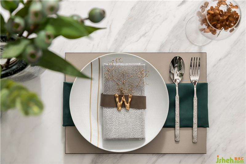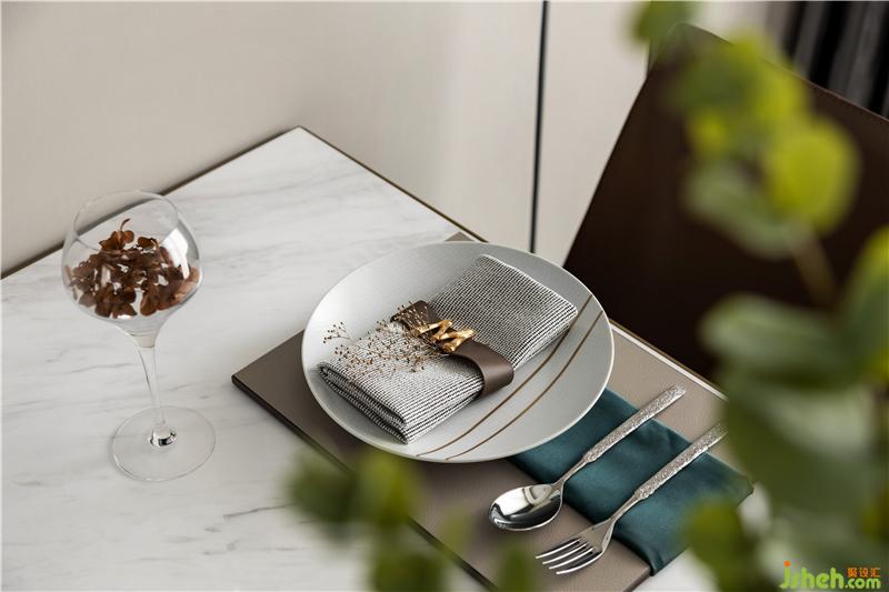 餐桌與水晶吊燈泛著金屬令人心動(dòng)的光澤,雅致的大理石與精致的餐具頗具現(xiàn)代生活的儀式感。