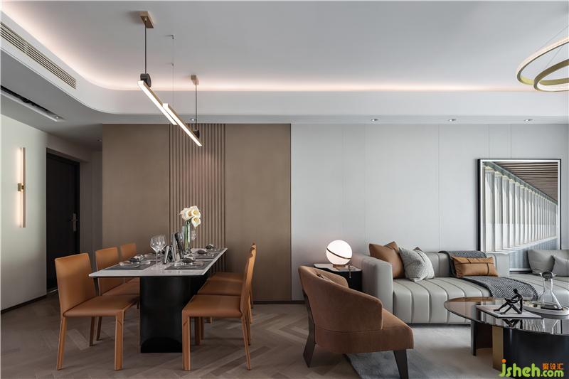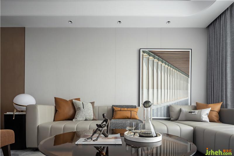 灰白的主色調(diào)溫柔而沉穩(wěn),橙色、棕色等暖色調(diào)的融入又賦予了空間活力的氛圍,彰顯層次感,讓氣質(zhì)融入生活,讓格調(diào)渲染空間。