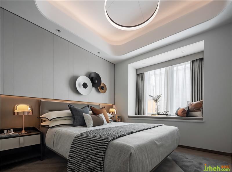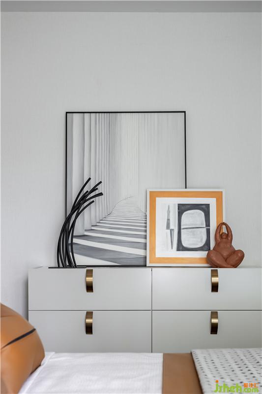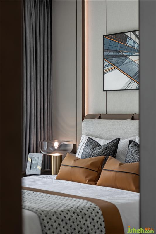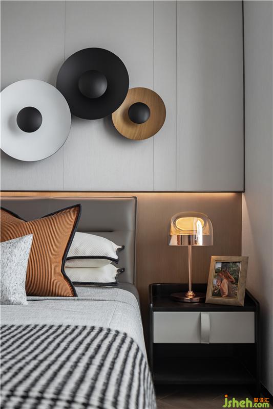 背景墻的裝置品不僅呈現(xiàn)出了別樣的層次感,又與整體空間色調(diào)相互呼應(yīng),營造出了深遠(yuǎn)的視覺感官。