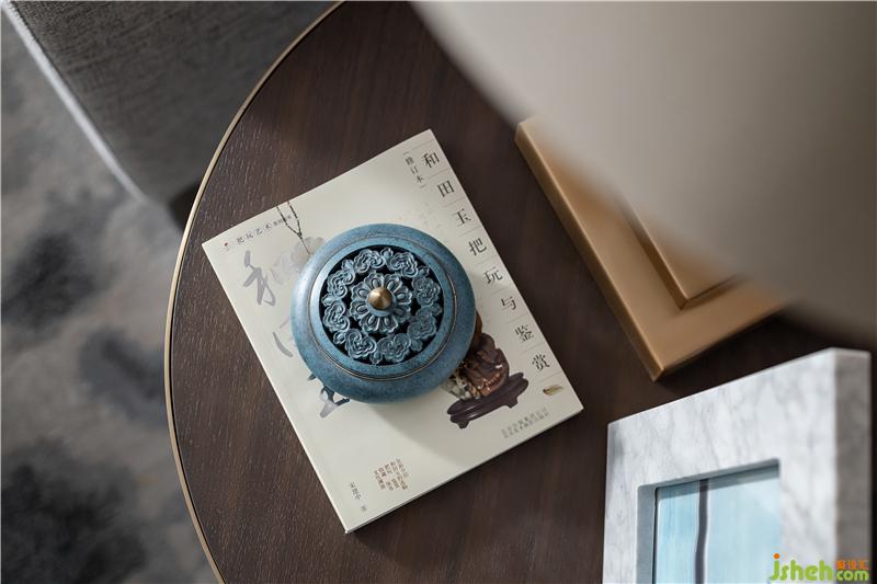 長沙樣板房設(shè)計客廳氛圍淡雅而不清寂,儒雅的東方美感,意境空靈,碧色茶盞、湛藍香爐、生機綠植、皆于含蓄內(nèi)斂中書寫生活的溫度,并賦予了空間細膩的優(yōu)雅。