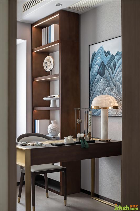 以寫意筆觸,回應(yīng)獨屬于東方清韻的人文臻境,無需濃墨重彩,只余素雅之姿,豐富書房層次感,詮釋東方文化的精粹,并將略顯沉重的傳統(tǒng)元素,以更加優(yōu)雅輕盈之態(tài)呈現(xiàn)于空間之中