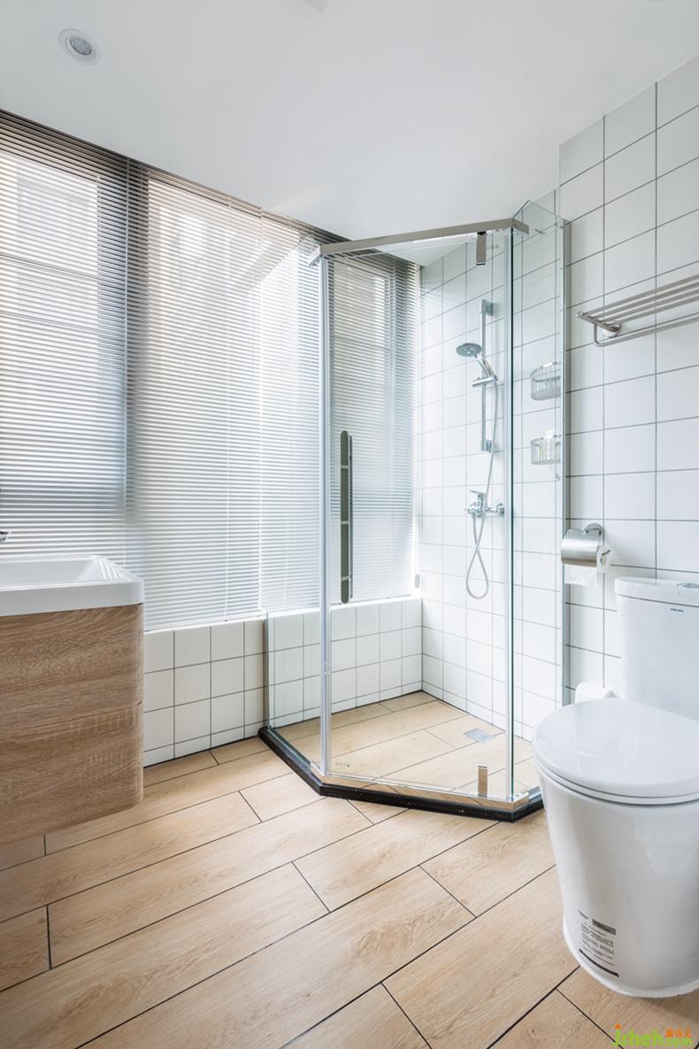 衛(wèi)生間同樣采用明快的小白磚鋪貼,地面搭配木紋地磚,溫馨舒適。室內(nèi)設(shè)計(jì)師