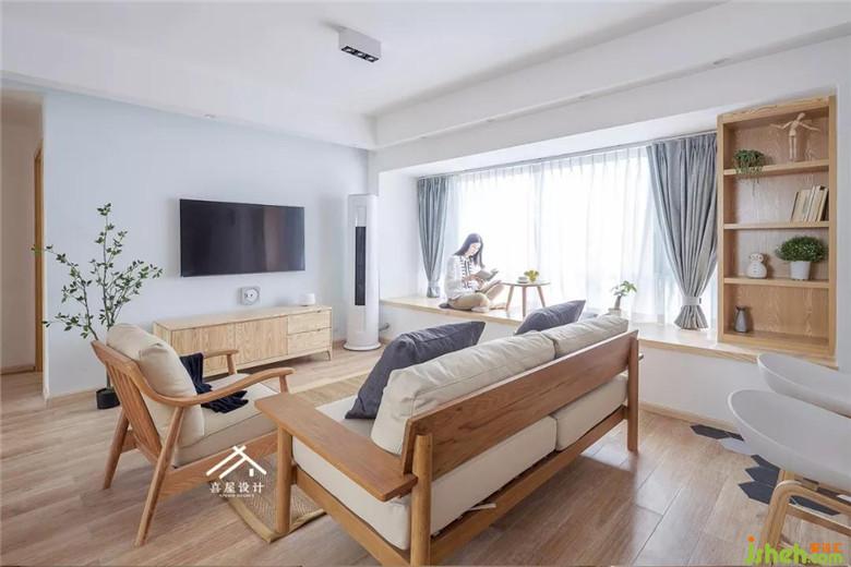 淺湖灰與木色匯聚到客廳的一剎那,時間仿佛慢了許多,就多了容納幸福的體量。我們把飄窗臺做成了木板的在上面看看書小憩都會非常舒服。