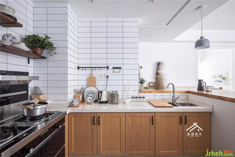 吧臺做了實木自然原邊,更自然,廚房的地磚和客廳用了硬拼的方式,地板下面墊了木工板,這樣的牢固一如幸福的遠景。